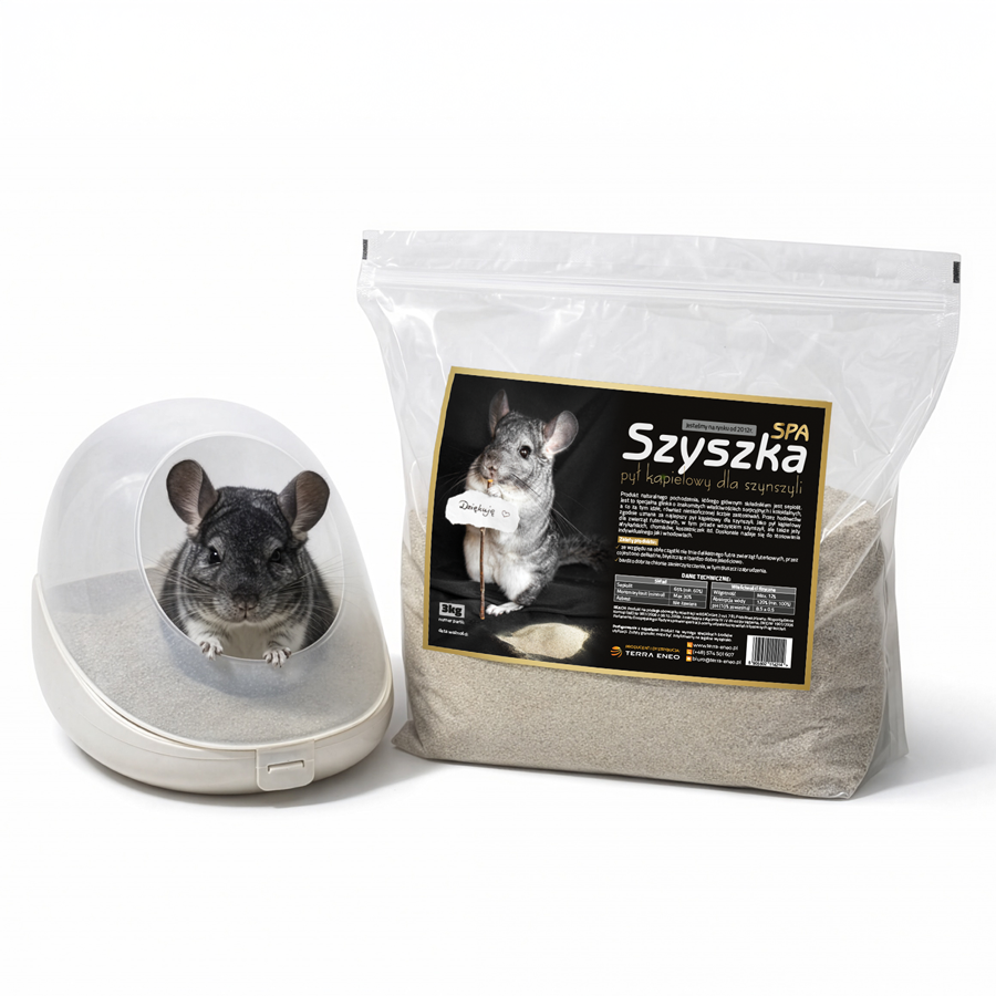 SzyszkaSPA to produkt naturalnego pochodzenia, którego głównym składnikiem jest sepiolit. Jest to specjalna glinka o znakomitych właściwościach sorpcyjnych i koloidalnych, a co za tym idzie, również nieskończonej liczbie zastosowań. Przez hodowców zgodnie uznana za najlepszy pył kąpielowy dla szynszyli.
